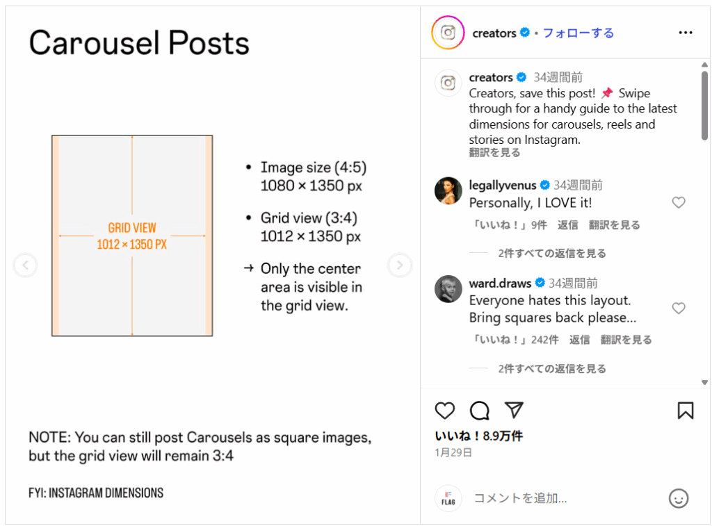- フィードの推奨比率が縦長へ(★★★:高)