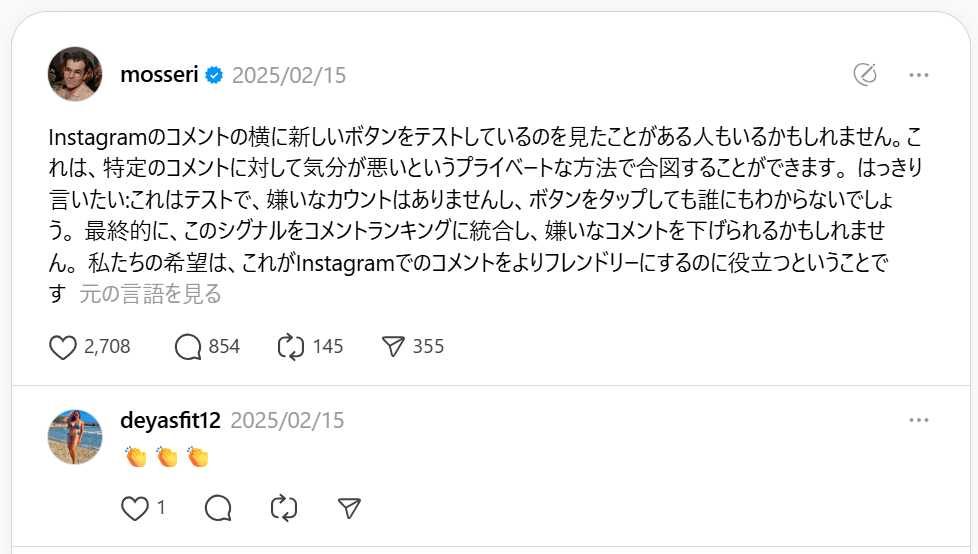 参考)アダム・モッセーリ氏公式スレッズで発表 2025/2/15
