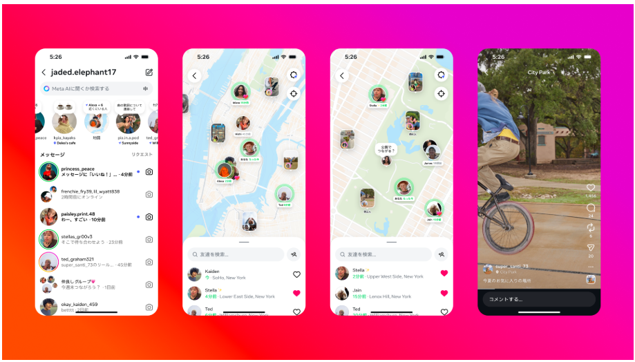 Instagram は DM(ダイレクトメッセージ)上に「地図 (Map)」機能を追加し、リアルタイムで自分の現在地を共有したり相手の現在地を確認できたりする機能を展開すると報じられている。