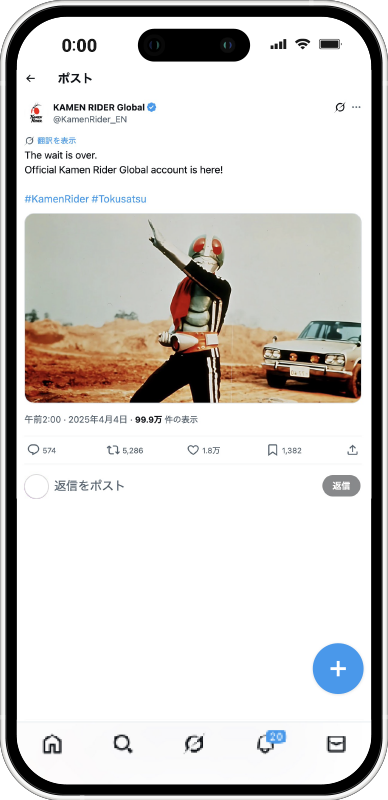アカウント開設前から運用体制を綿密に設計し、2025年4月3日、『仮面ライダー』放送開始の記念日に合わせて開設。初投稿では象徴的な変身シーンを発信し、1.8万いいねを獲得。世界中から歓迎の声が殺到しました。ソフトローンチ期(4〜6月)は週1〜2投稿でペースを抑えつつ、既存ファンとの関係構築を重視し、7月の新ライダー発表に合わせて本格始動する段階的戦略を実行しました。