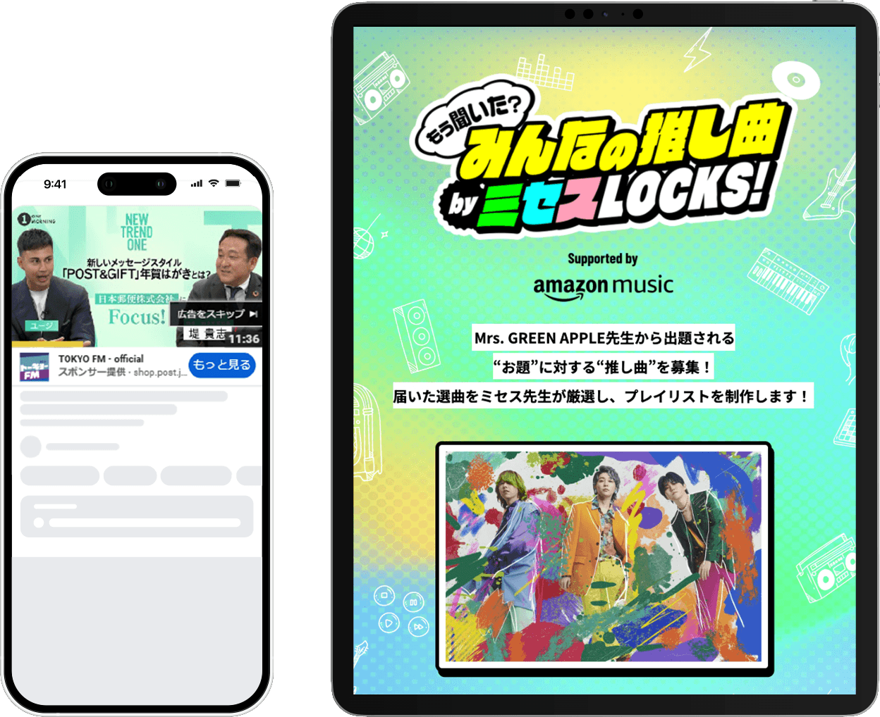 また、「もう聞いた?みんなの推し曲by ミセスLOCKS」では、特設サイトでの画像生成ジェネレーターやSNS連動自動返信キャンペーンなど、デジタルと音声メディアを掛け合わせた新しい参加体験を提供。エンタメ領域にも強い知見を活かし、多様なチャネルでリーチ拡大とファンエンゲージメント向上につなげています。