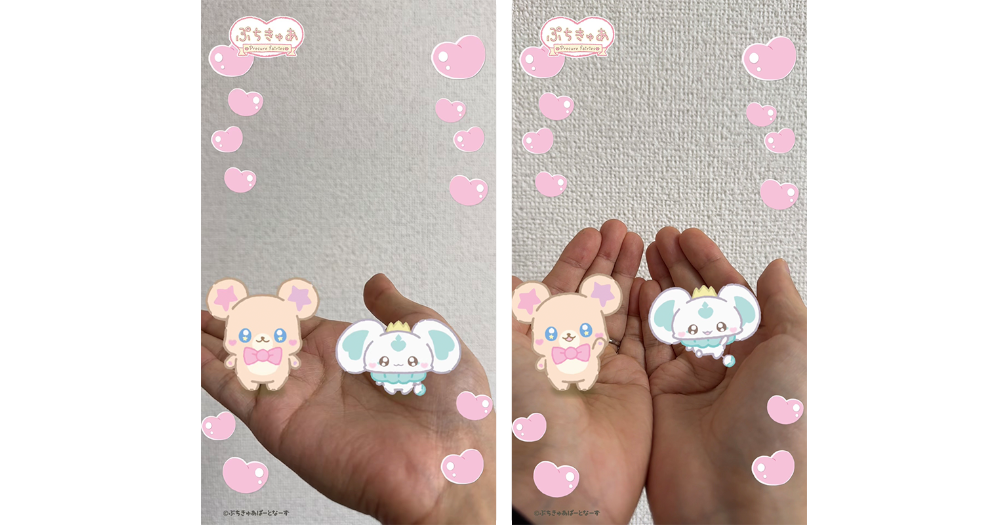 人気アニメ「プリキュア」シリーズ初のスピンオフ作品である短編アニメーション『ぷちきゅあ〜Precure Fairies〜』のキャラクター「ぷちきゅあもふるん」と「ぷちきゅあぽるん」を活用したTikTokエフェクトを制作しました。
