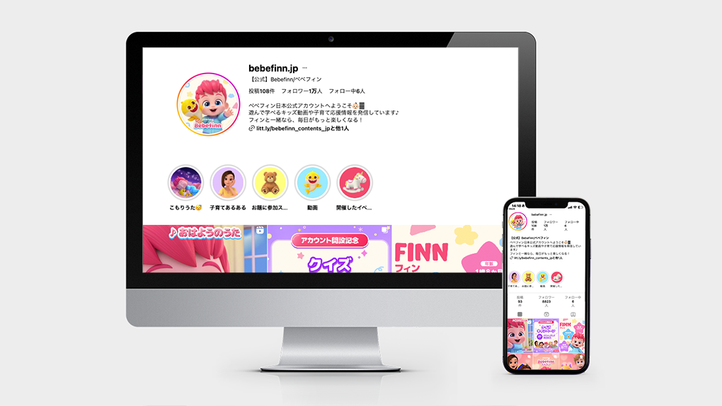 世界的に人気のあるBebefinn(べべフィン)の日本市場への本格進出を支援するため、日本の子育てカルチャーにフィットし、キャラクター理解を深める取り組みとしてInstagram運用とWebサイトローカライズを実施しました。